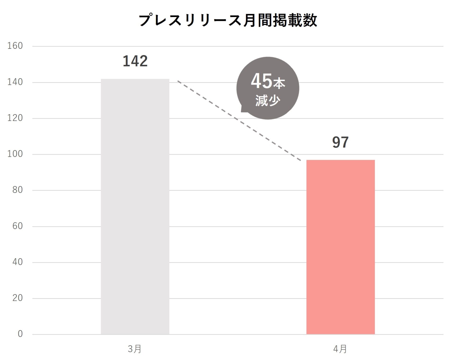 2023年4月のフェムテック・フェムケアの掲載数は、先月と比べて45本減の97件。
