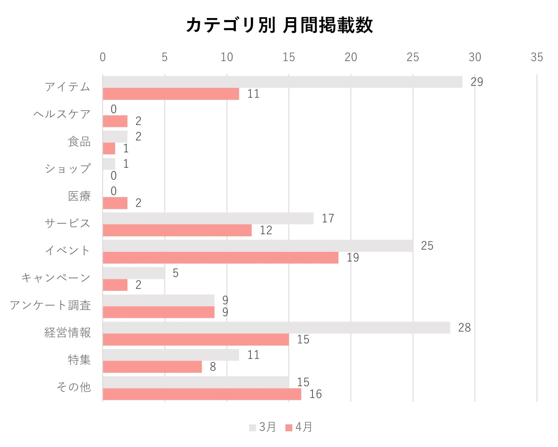 カテゴリ別月間掲載数も、先月と比べて全体的に減少。