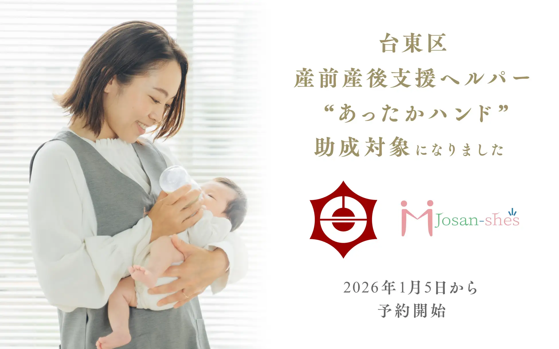 ジョサンシーズの提供するベビーシッター事業が、台東区の産前産後支援ヘルパー“あったかハンド”助成対象へ