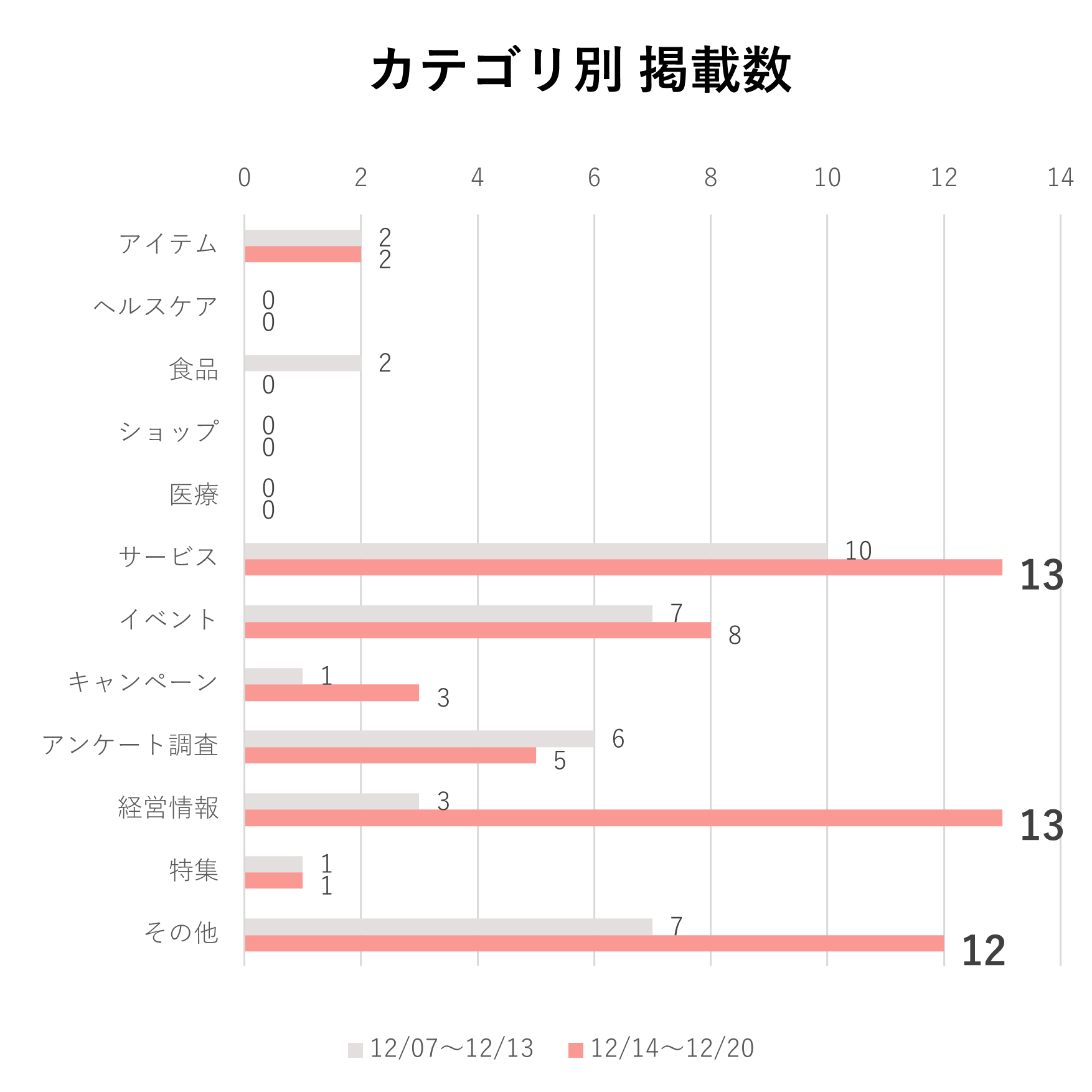 カテゴリ別では「サービス」「経営情報」が各13本、「その他」が12本。