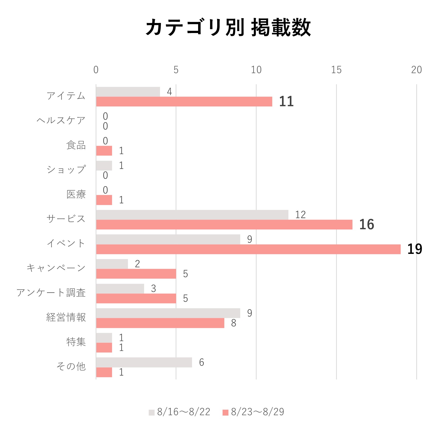カテゴリ別では、「イベント」が19本、「サービス」が16本、「アイテム」が11本。