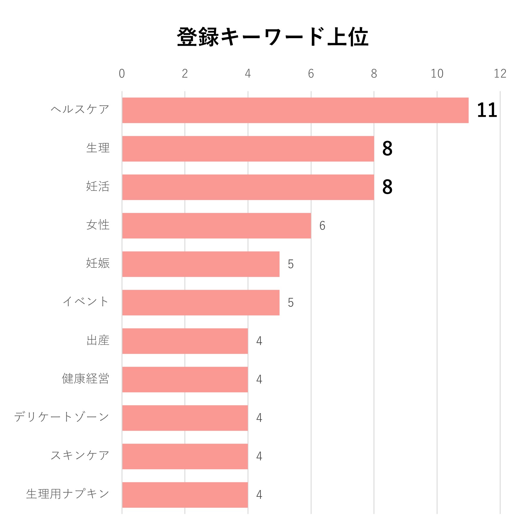 登録キーワードでは、「ヘルスケア」が11本、「生理」「妊活」が同数で8本でした。