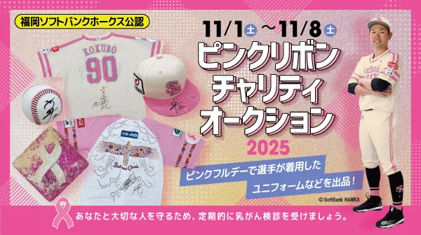 福岡ソフトバンクホークス「ピンクリボンチャリティオークション」開催 ~監督・選手使用ユニフォームなど貴重アイテムを出品、売上の一部を寄付~